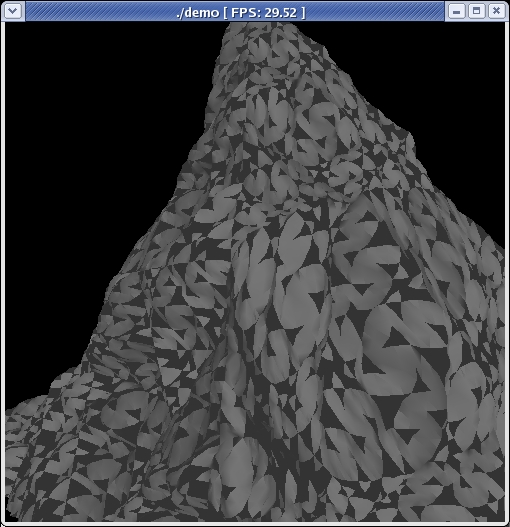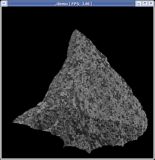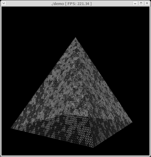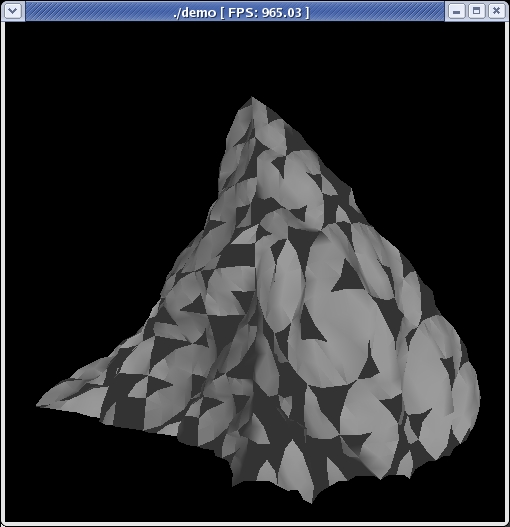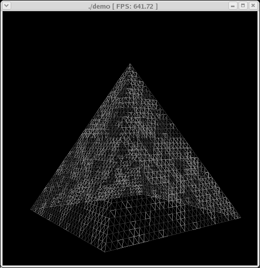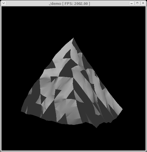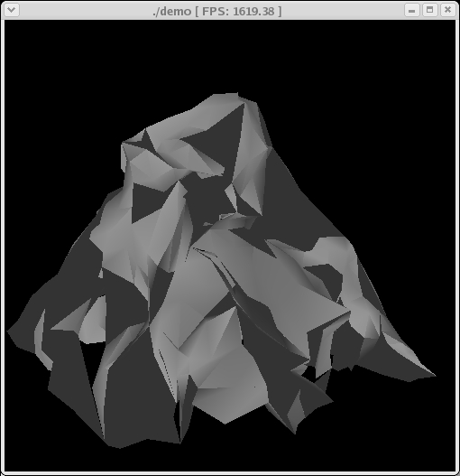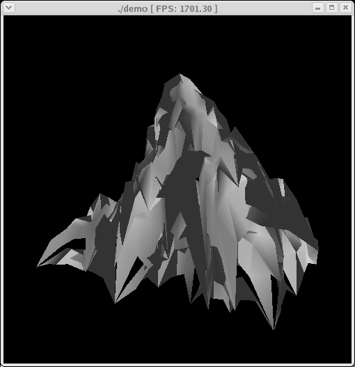For this assignment, the goal was to create a program that took a base object (like a pyramid or cone) made entirely of triangle polygons and subdivide it in such a way that the subsequent object resembles a mountain. Here's the basic pseudocode: